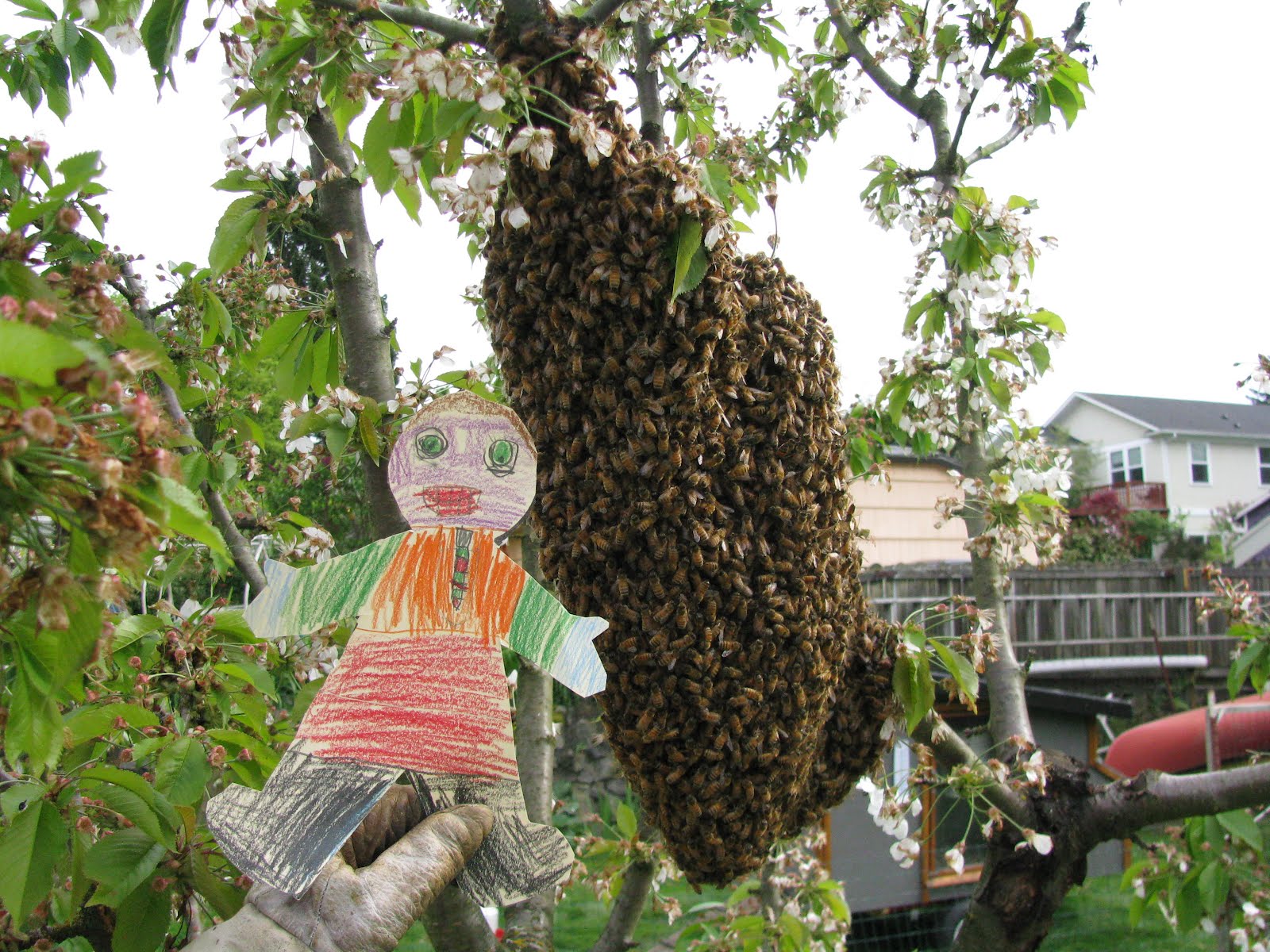 Flat Stanley came to Seattle from a young relative in Pennsylvania. He got to visit a bee swarm when he was here.